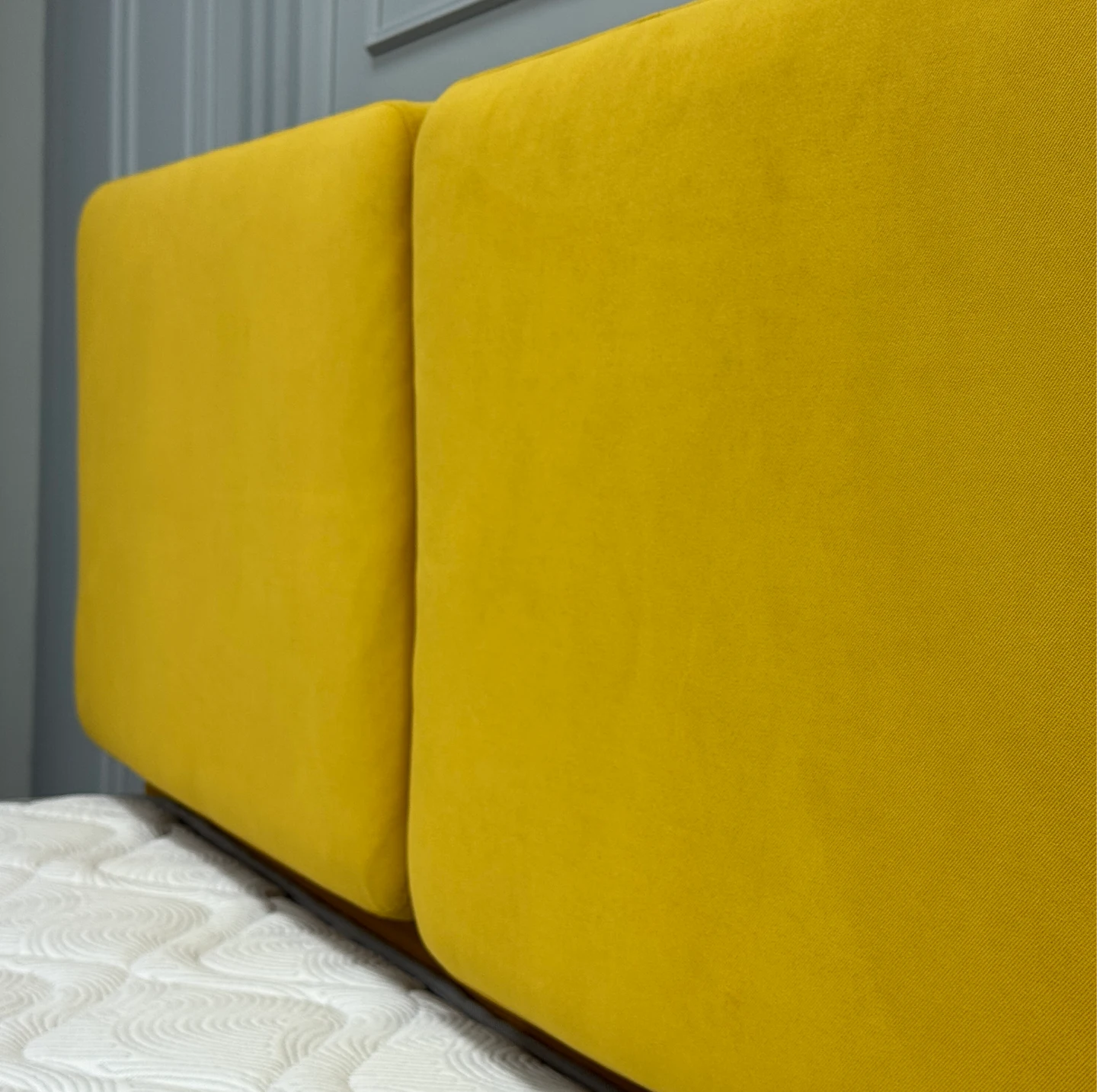 Подушки в данной модели изготовлены с использованием жесткого основания из МДФ с тыльной стороны для придания ей идеальной формы, что позволяет применять с фронтальной стороны сочетание пены и пышного слоя синтепона. Такое сочетание повышает комфорт спинки при ее эксплуатации в сидячем положении во время отдыха на кровати.
