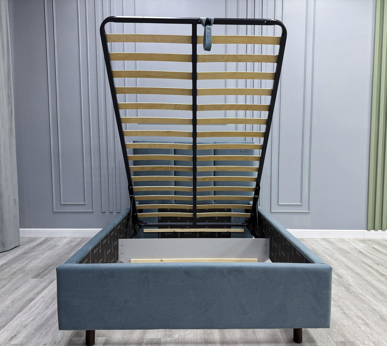 - Имеет полный набор доступных опций: комплектация подъёмным механизмом, настилом ЛДСП/МДФ, ортопедическим основанием, основанием сплошным ЛДСП.